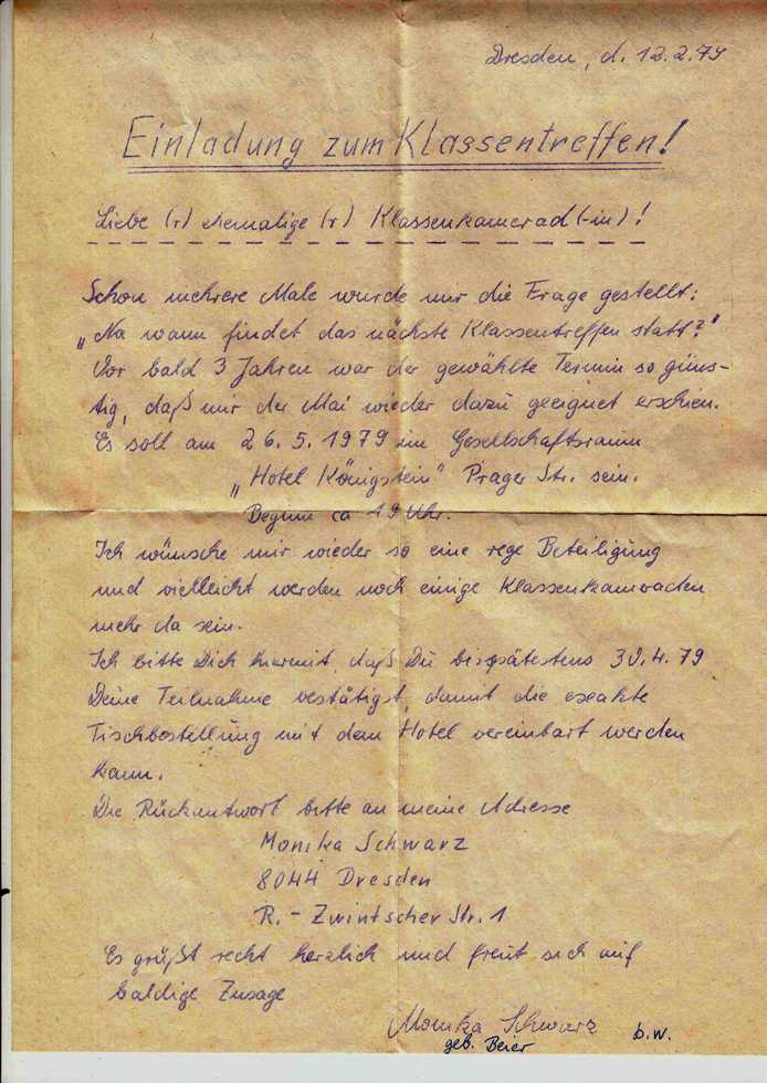 Erinnerung, hier ist die Einladung zum Treffen vor 30 Jahren zu